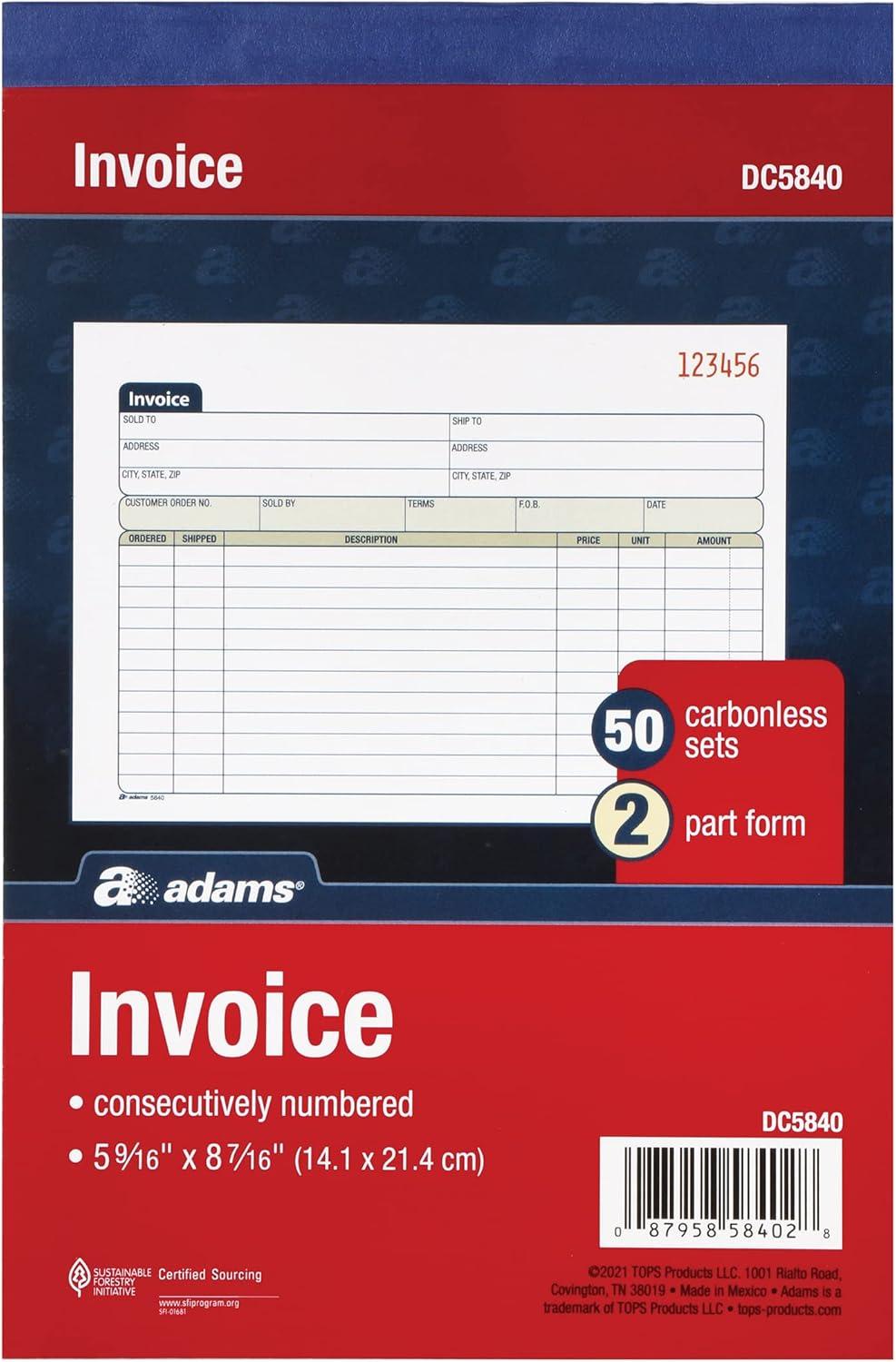 Our clearance section features the best deals on Adams Invoice Book, 2-Part, Carbonless, 5-9/16 x 8-7/16 Inches, 50 Sets per Book (DC5840)(Invoice Book) and accessories. Check it out now!