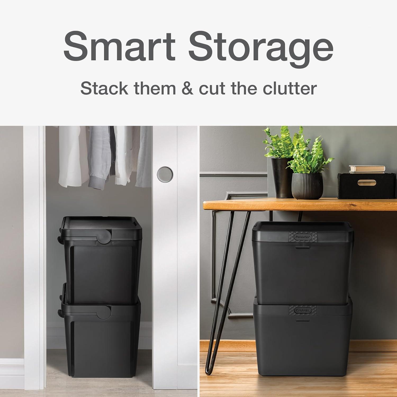 Pendaflex Portable File Box with File Rails, Simple Document Storage, File Bin for Home and Office, Hinged Lid with Double Latch Closure, Black, 3 Black Letter Size Hanging Folders Included (41742AMZ)(Granite)
