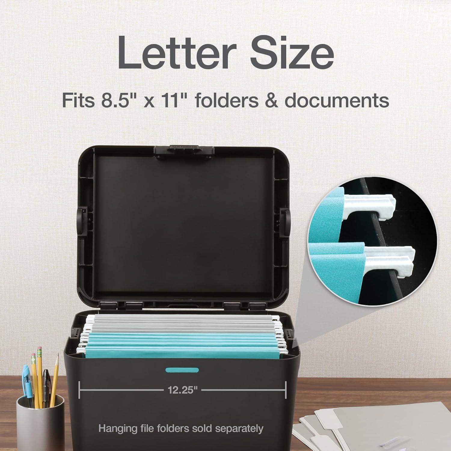Pendaflex Portable File Box with File Rails, Simple Document Storage, File Bin for Home and Office, Hinged Lid with Double Latch Closure, Black, 3 Black Letter Size Hanging Folders Included (41742AMZ)(Black)