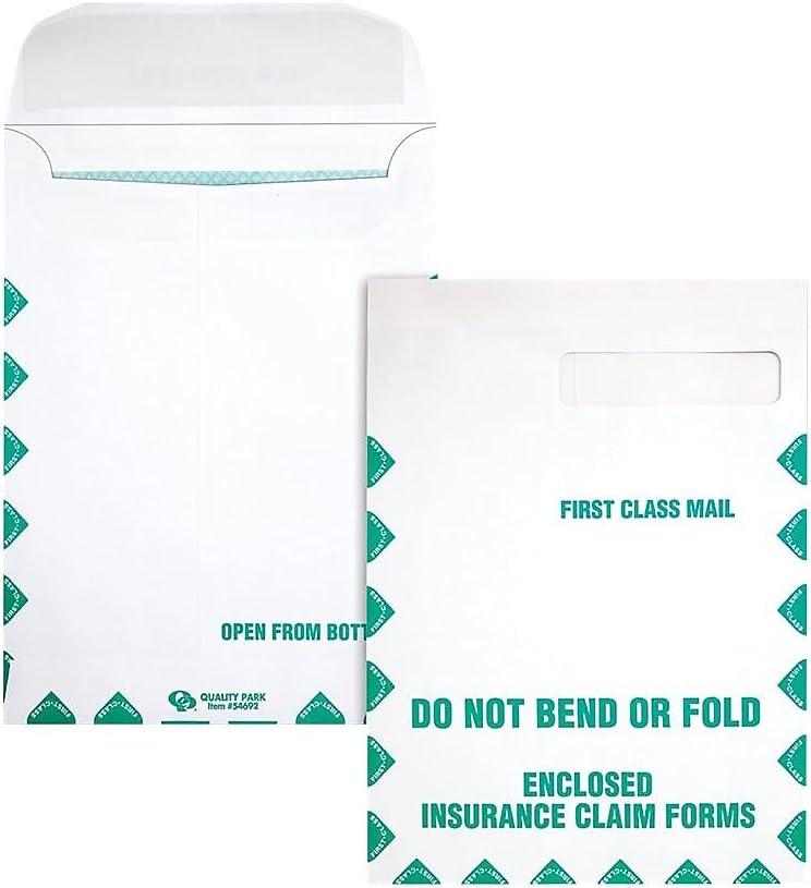 Quality Park Health Claim Insurance Envelopes, with Security Tint and First Class Border, for Medicare Form HCFA-1508 and other Healthcare Forms, 28 lb. White Wove, 100/Box (QUA54692)((Pack of 500))