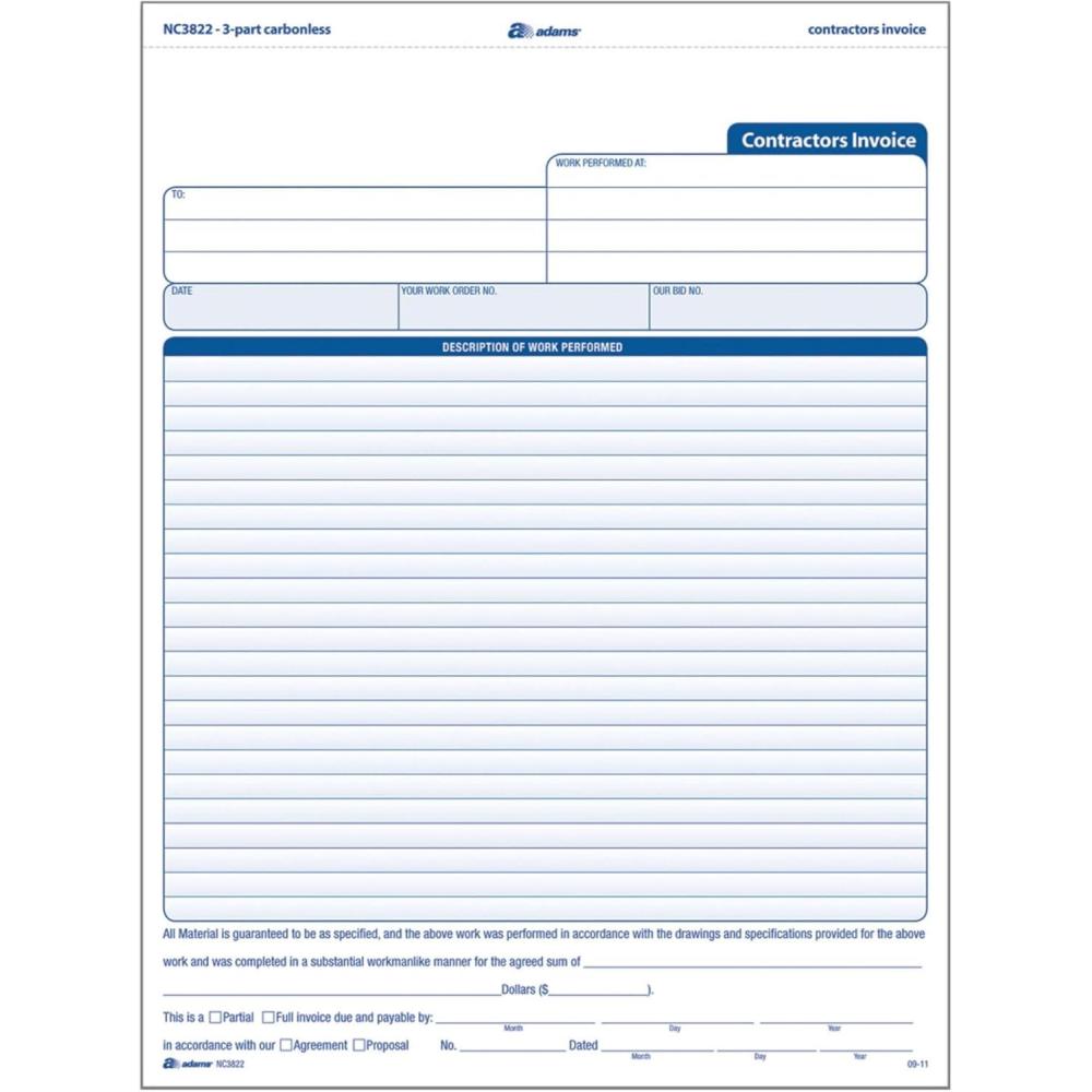Adams Contractor Invoice Forms, 8.5 x 11.44 Inch, 3-Part, Carbonless, 100-Pack, White, Canary and Pink (NC3822)