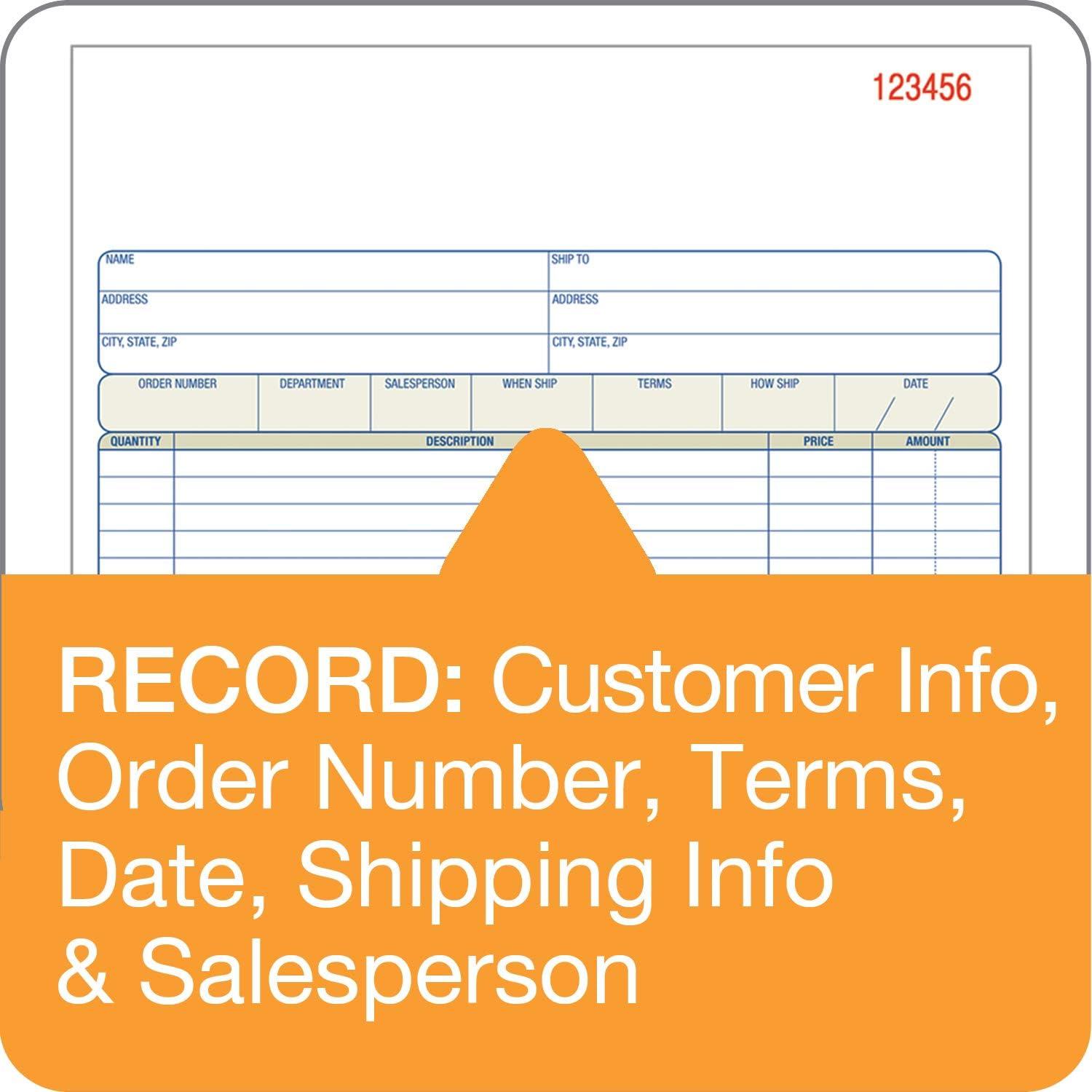 Adams order books provide a professional 3-part carbonless forms – give customers the perforated white top copy, keep the Canary and Pink copies for your records. Order form provides customer information, shipping address, salesperson, payment Type, and the price and quantities of items ordered. A wraparound back cover Tucks between pages so you don't write through multiple sets. The blank space in the header Leaves room for a company stamp, and the unique 6-digit receipt numbers help you easily locate orders.