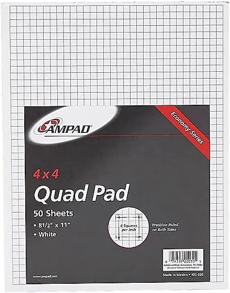 Ampad 8 1/2 x 11 Inches White Quad Pad, 4 Square Inch, 50 Sheets, 1 Each (22-030C)(50 Count (Pack of 1))