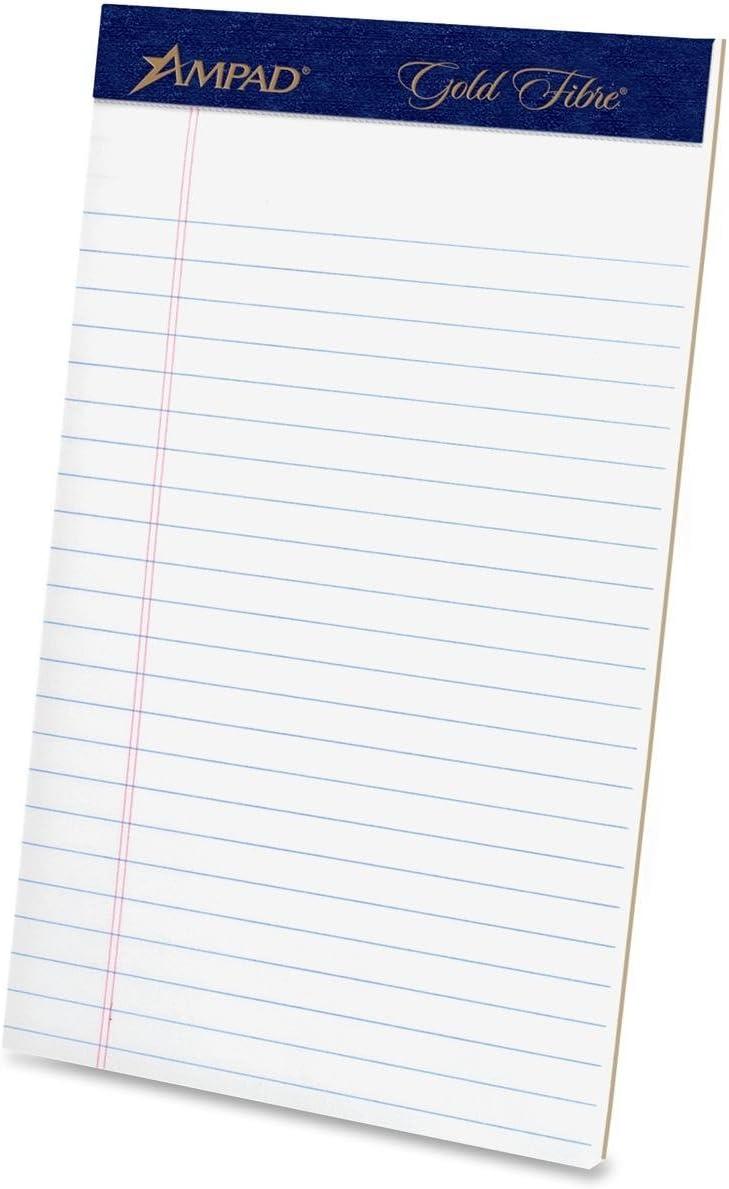 Ampad Gold Fibre Pad, White, 5 x 8, Jr. Legal Rule, 50-Sheets, 4-Pack
