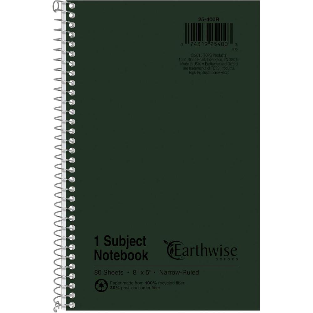Ampad 25-400 Single Wire Notebook, Recycled, Size 8 x 5, 1 Subject , Green Cover, Narrow Ruled , Not 3 Hole Punched , 80 Sheets Per Notebook