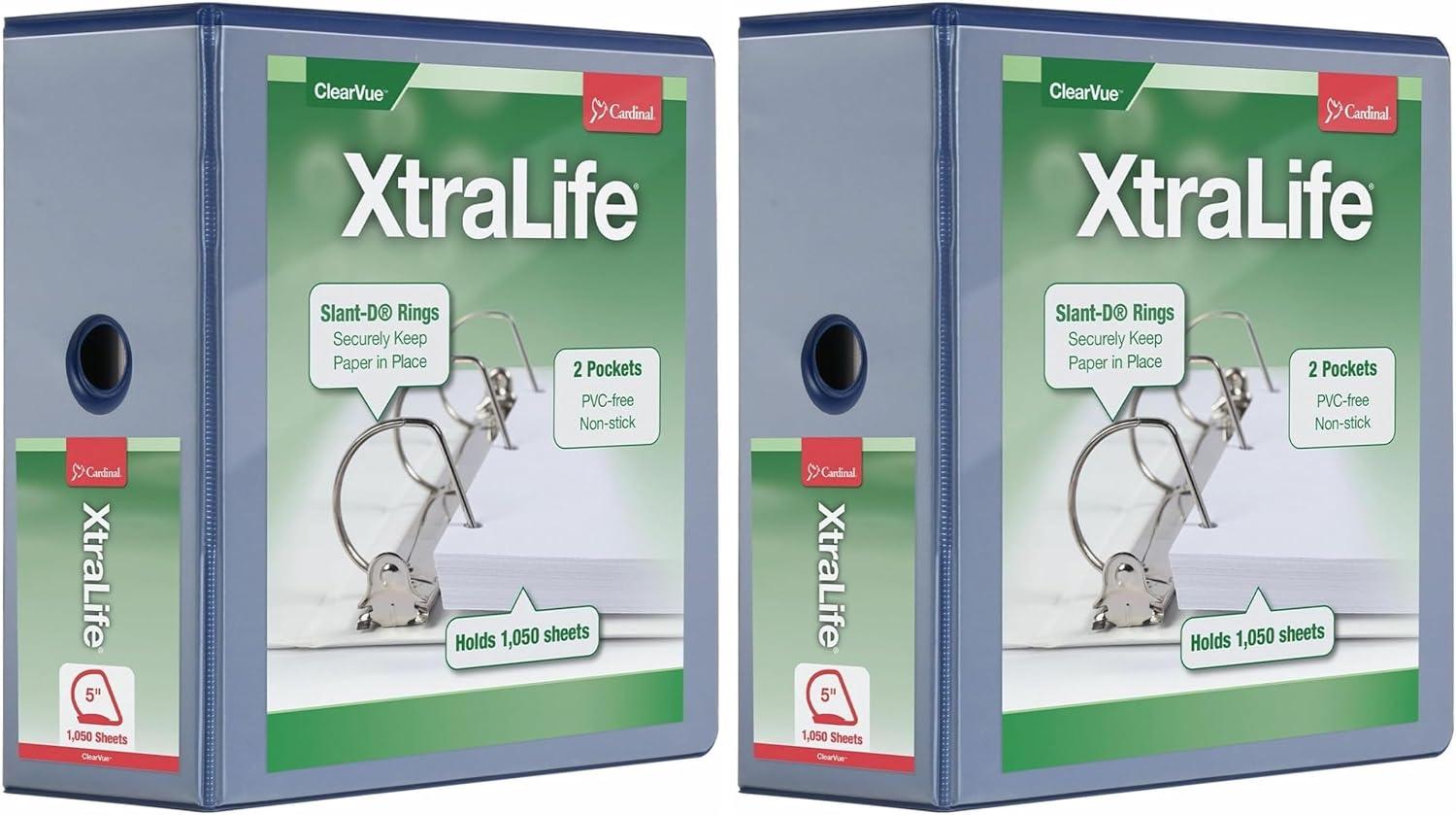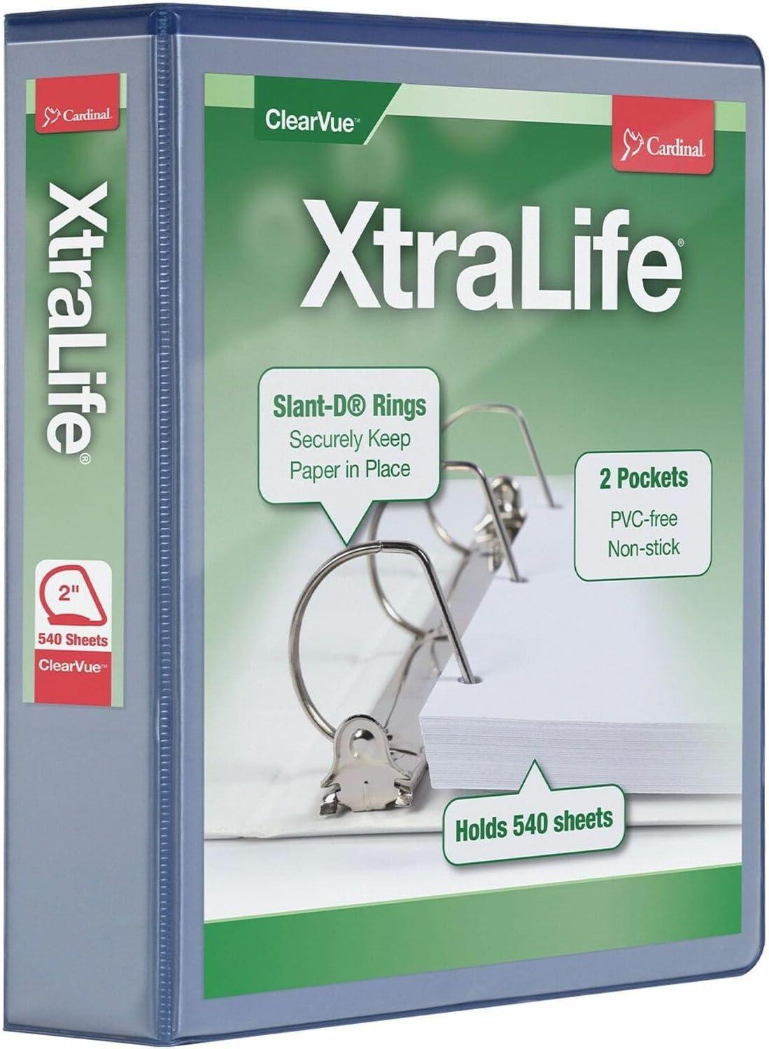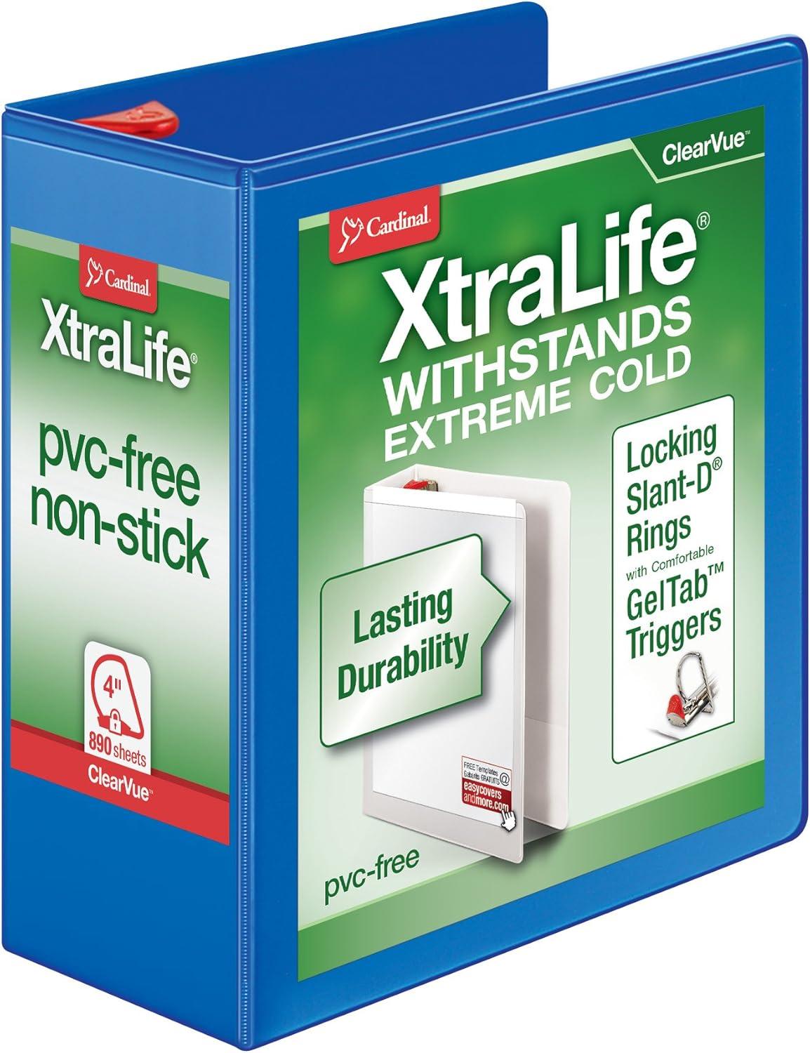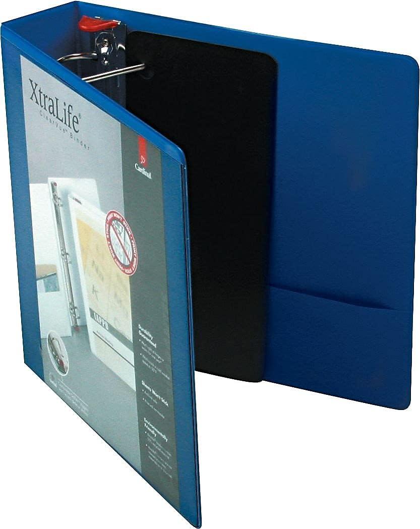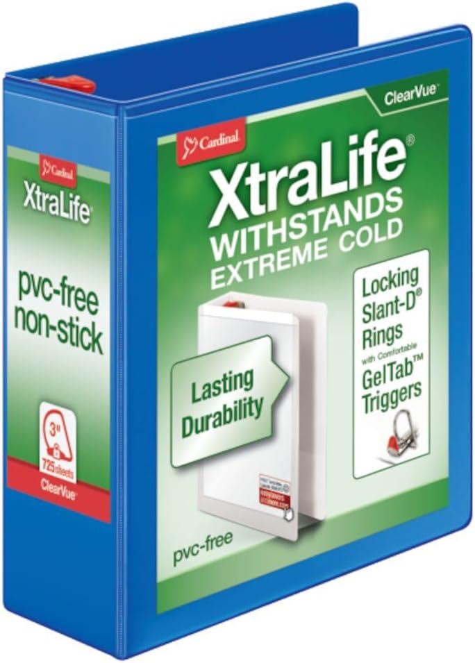 Cardinal 3 Ring Binder, 6 Inch Heavy Duty XtraLife Binder, Locking Slant-D Rings, Crack-Resistant Cover & Spine, ClearVue Covers with Shelf Pull, Holds 1,300 Sheets, White (26366)(Blue)