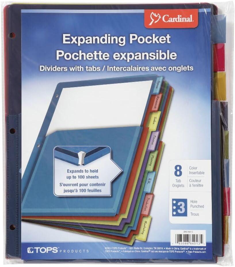 Package Contents: Cardinal Expanding Poly Pocket Dividers, 8 Tab, Multicolor (1 Pack)