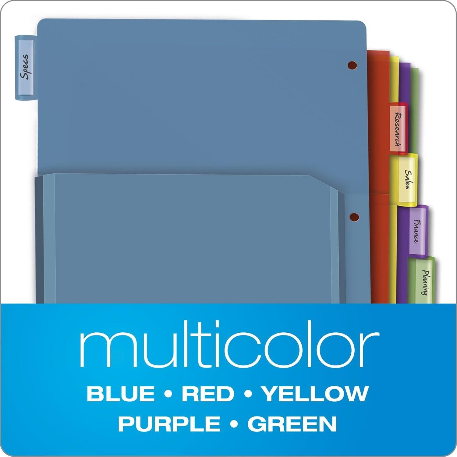 Extra-tough poly dividers with large insertable tabs offer a nonstick, transfer-safe way to organize all documents and photos. Large, multicolored tabs are designed to provide ample room for titles. Each translucent divider expands to hold 100 letter-size sheets and is designed so paper tab inserts won”t fall out. Scratch-resistant, nontransfer material is PVC-free and safe for all documents and photos.