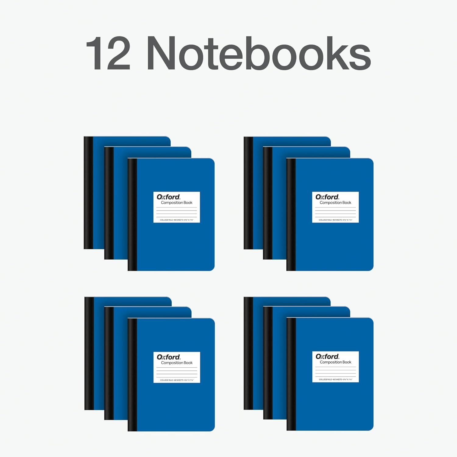 Oxford Composition Notebook 12 Pack, Notebooks for School, School Supplies, Journal for School Notes, College Ruled Paper, Writing Book, 7.5 x 9.75 Inches, 80 Sheets, Blue Covers (63742)