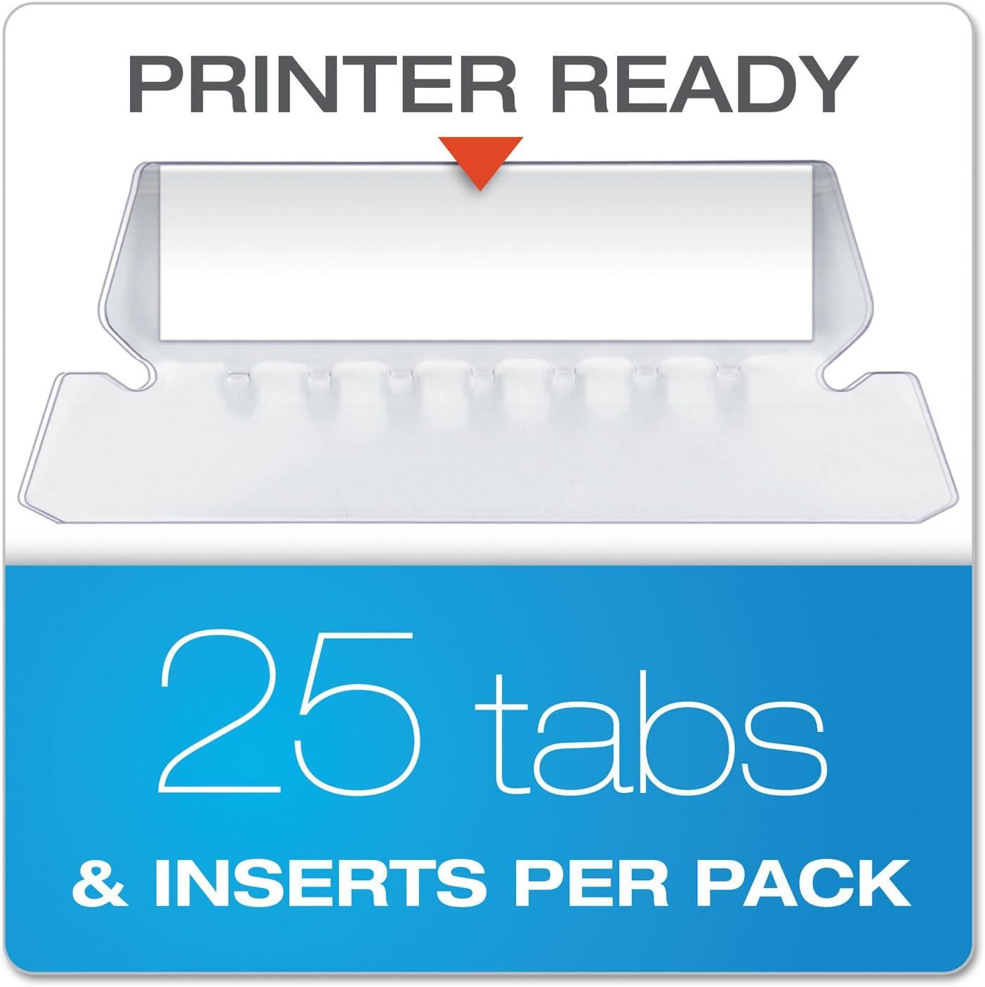 Includes a printable label sheet and 25 clear 1/5-cut tabs