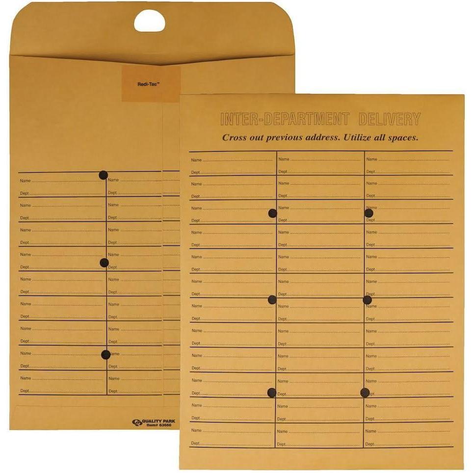 Quality Park 2-Side Interoffice Envelopes, Redi-Tac Box-Style, Brown Kraft, 10 x 13, 100 per Box, (63666)(One Size)