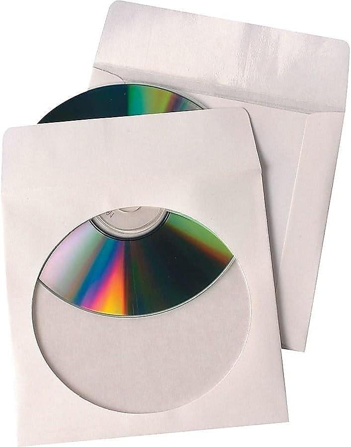 Quality Park Tech-No-Tear CD/DVD Sleeves, White, Pack Of 100 (77203)(4-7/8″ x 5″)