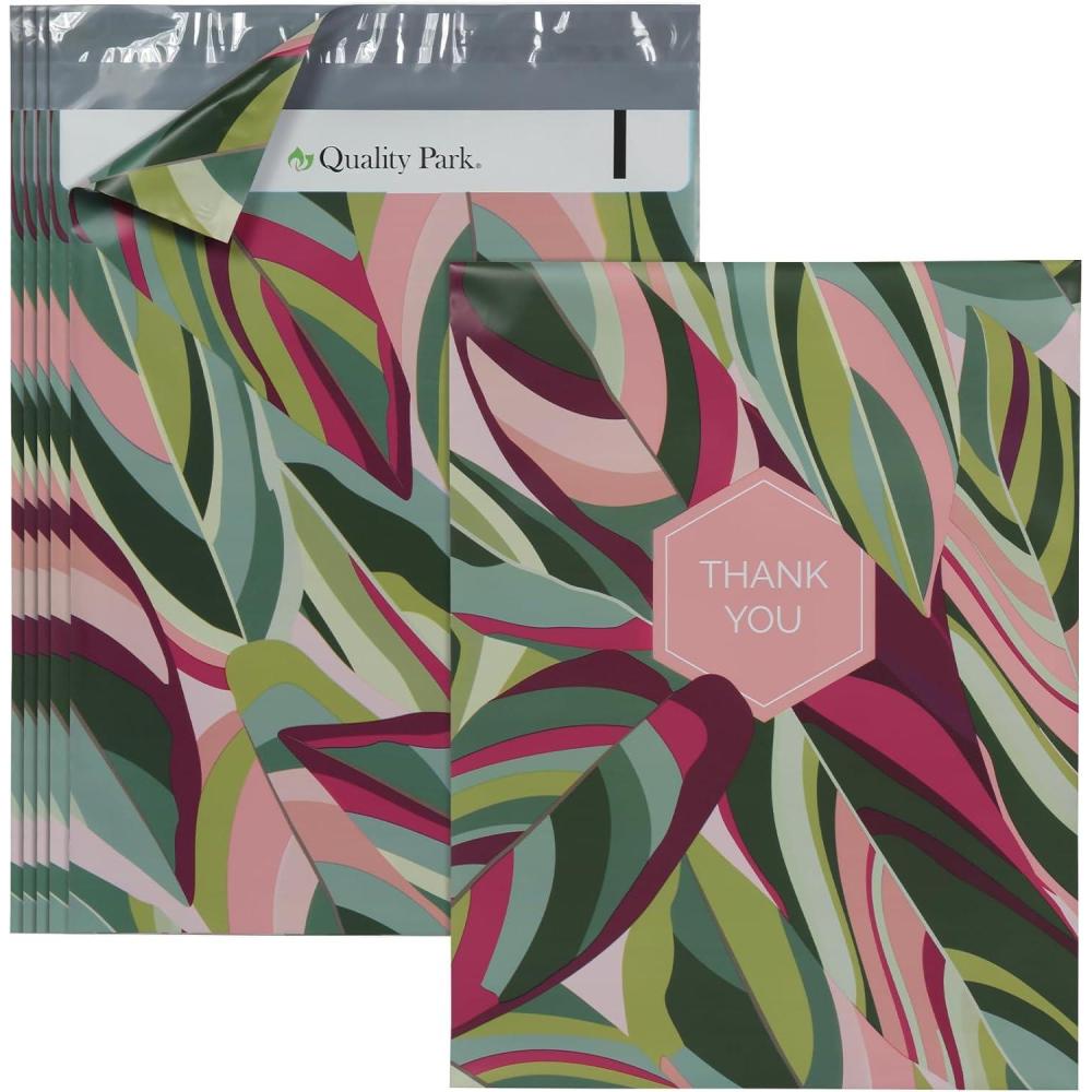 Quality Park Thank You Poly Mailers, 10 x13 Inch Shipping Envelopes, 100 Pack, Self Seal, Waterproof Shipping Bags for Clothing, Leaf (QUA89300)(Large)